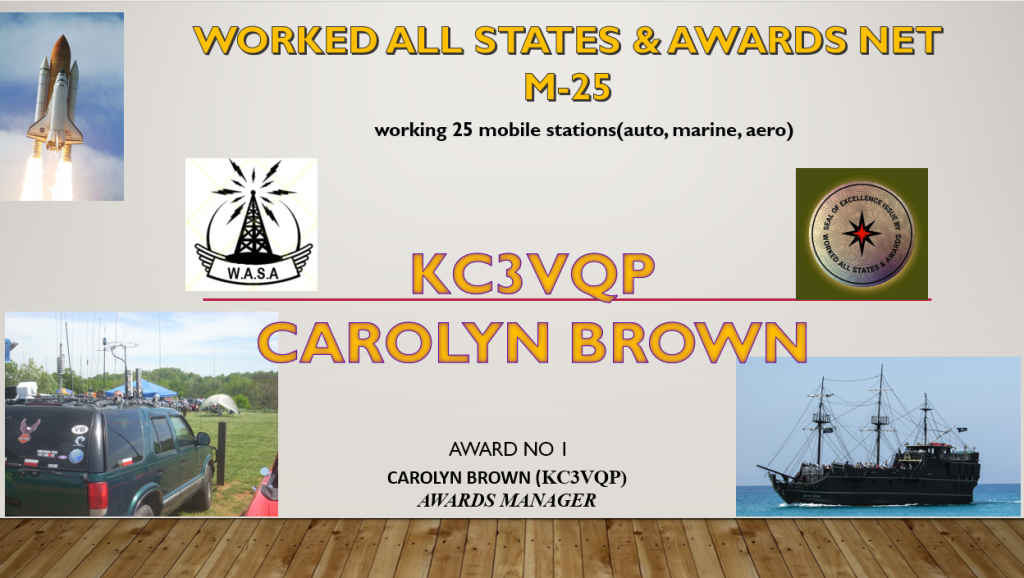 For working at least 25 mobile (I.e. auto, marine, 18 wheeler ) during one or more WASA Nets