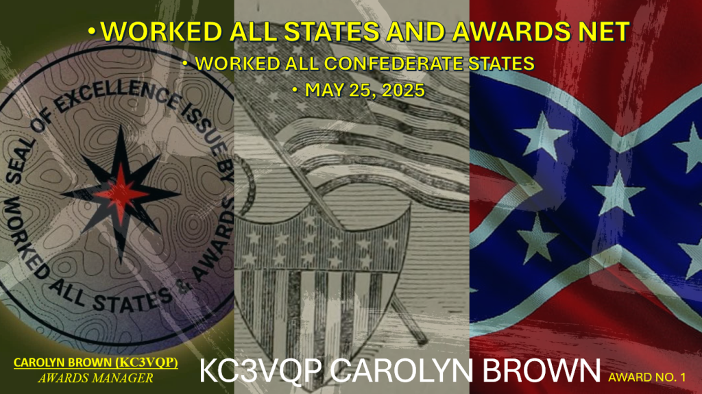 For working at least one station from SC MS, FL, AL. GA, LA, TX, VA, AR, NC & TN during one or more WASA Nets