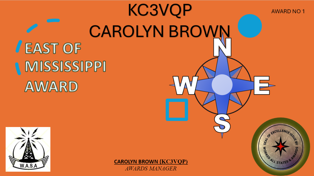 For working each state east of the Mississippi River during one or more WASA Nets. This list includes the following 26 states: AL CT DE FL GA IL IN KY MA MD ME MI MS NC NH NJ NY OH PA RI SC TN VA VT WI and WV